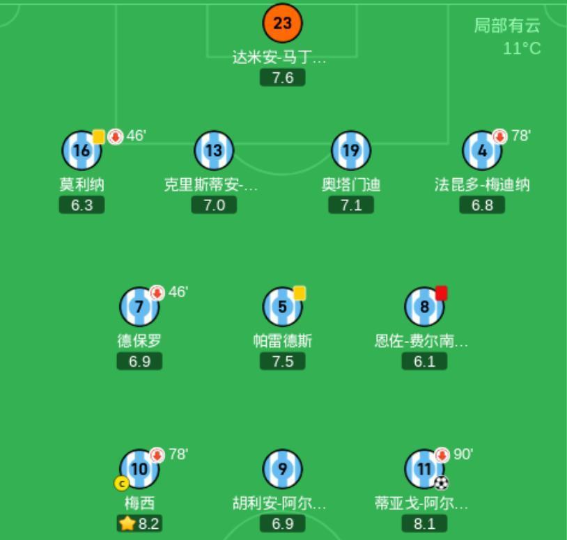 不外,本场比赛梅西如故主动条目下场,这个举动更令球迷钦佩和震荡。无人不晓,梅西宁可替补也不心爱被提前换下,但今天恩佐红牌下场后,球队又0-1过期,计议到自己膂力和球队耀眼,梅西如故主动条目斯帅把他换下。